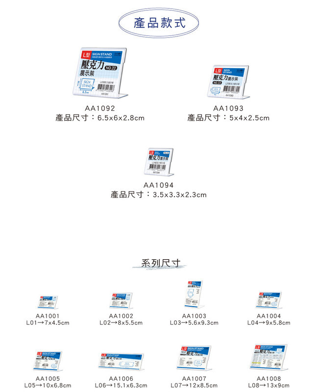 ◆四季紙品 L22 L23 L24壓克力展示框 卡座 【AA1092 AA1093 AA1094】