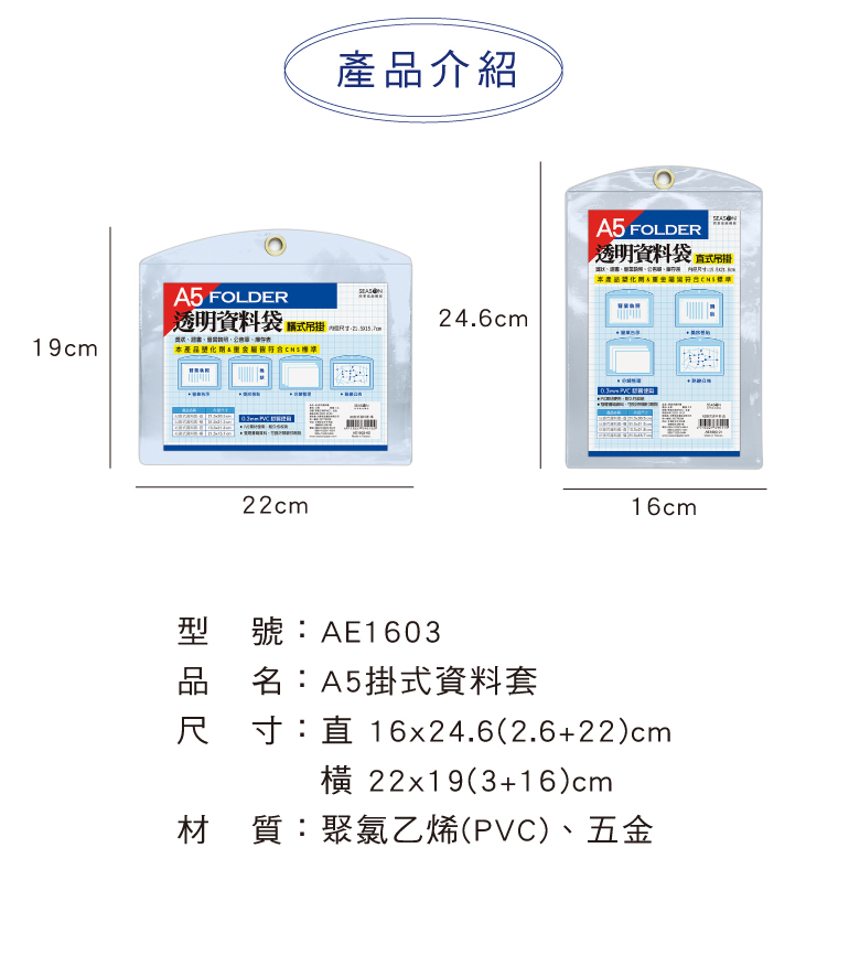 ◆A5掛式資料套 【AE1603】