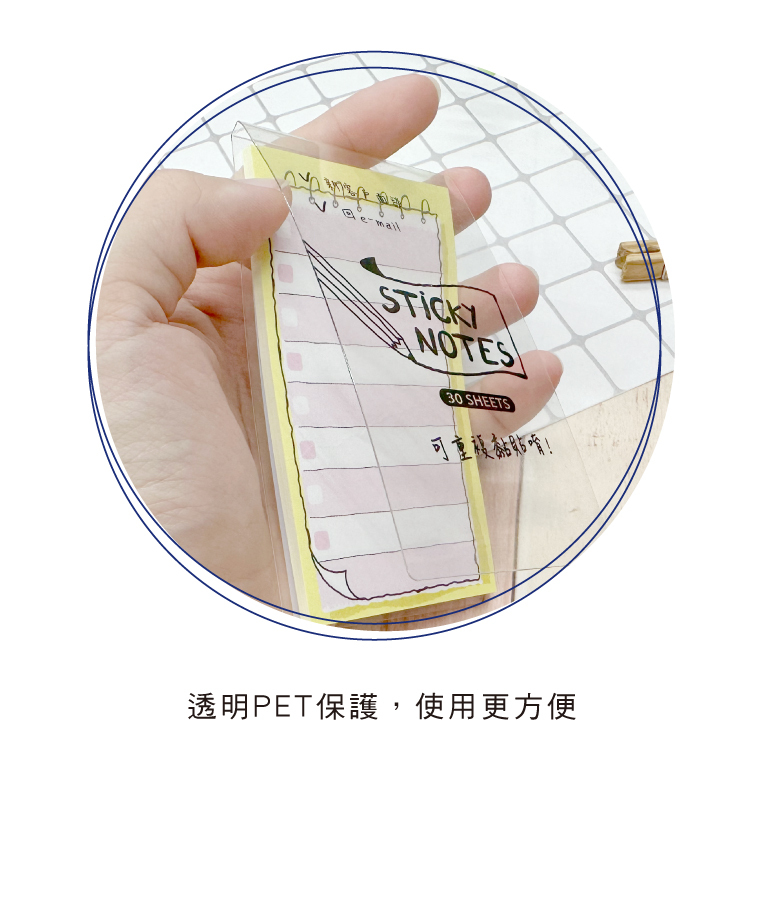 ◆好撕不沾黏,可重複黏貼,透明PET保護,使用更方便。