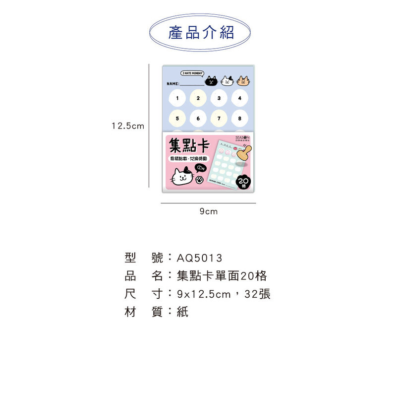 ◆四季紙品 集點卡單面20格 【AQ5013】