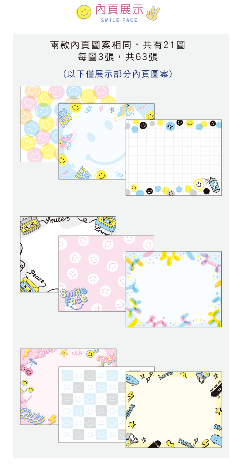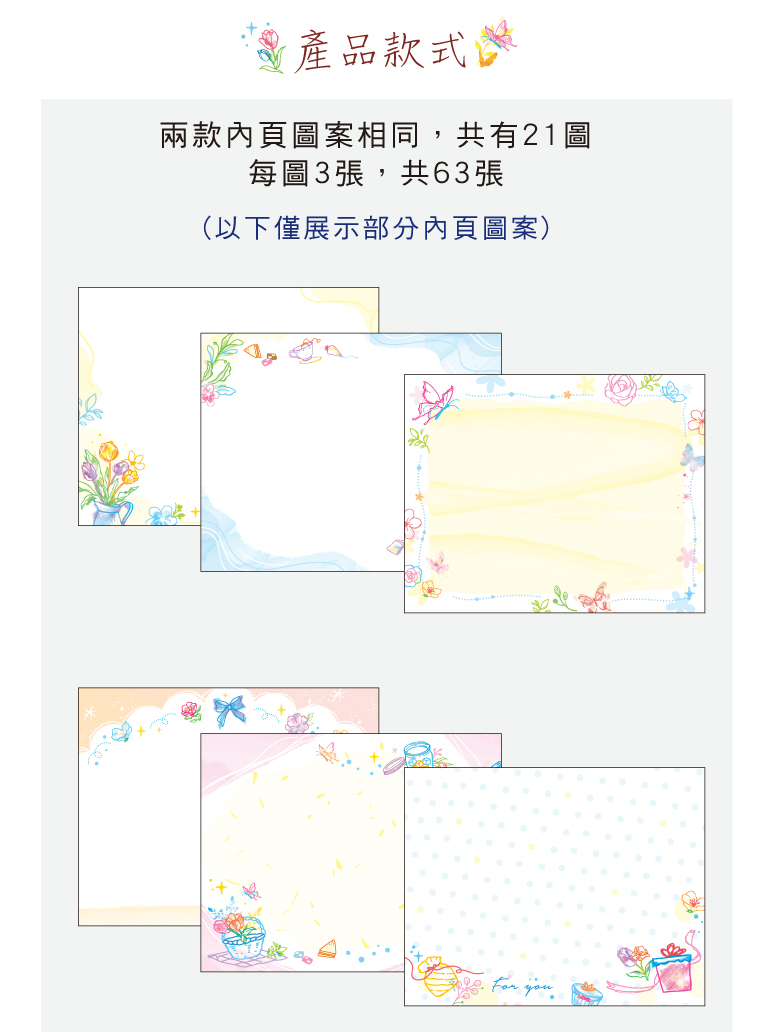 ◆每款21圖,每圖3張,共63張。