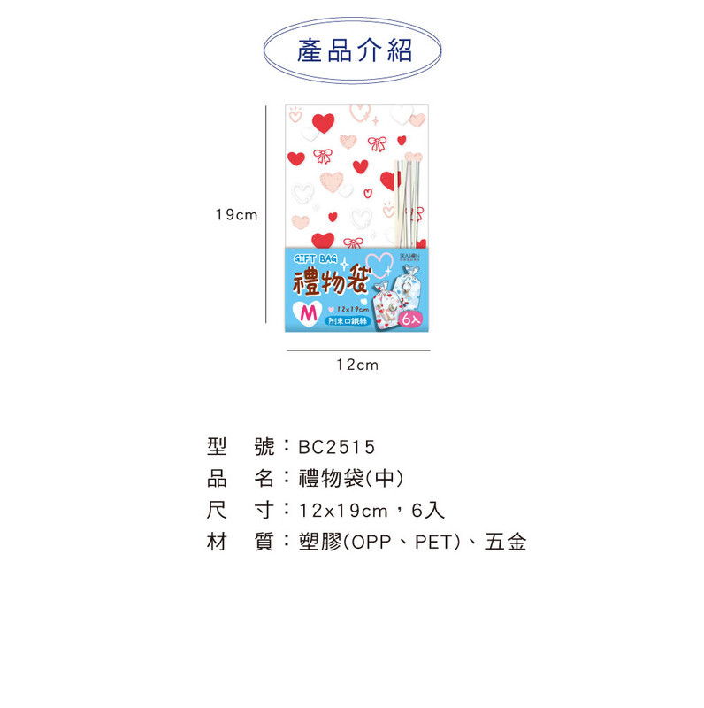 ◆每款內含6個袋子與束口鐵絲。