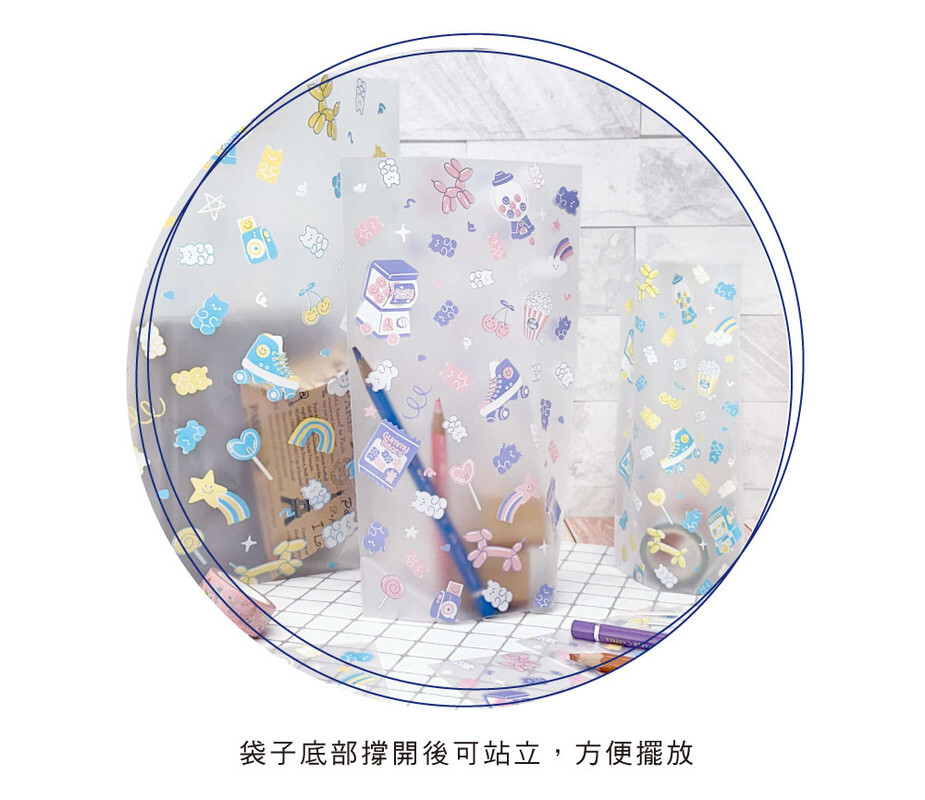 ◆霧面雙面彩印,袋子底部撐開後可站立。