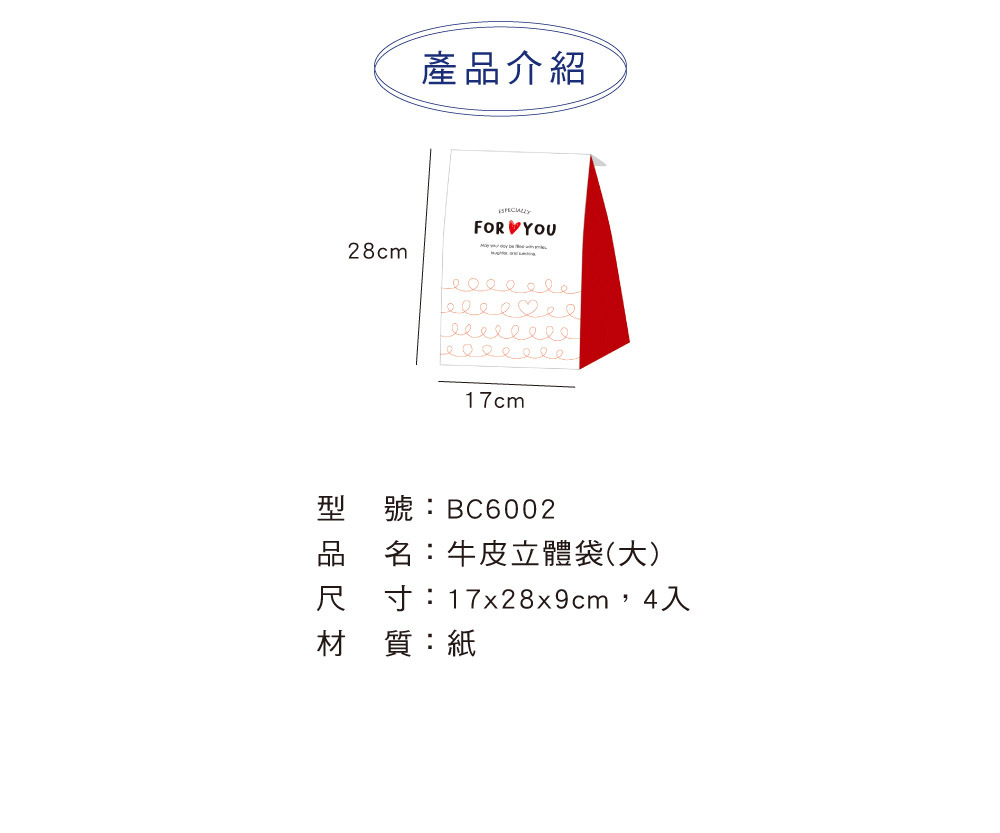 四季紙品 牛皮立體袋(大) 4入【BC6002】