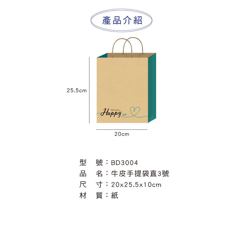 ◆四季紙品 牛皮手提袋 直3號 【BD3004】