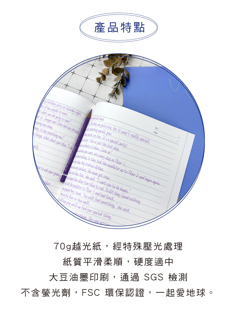 ◆70g越光紙,紙質滑順好書寫,紙色柔和。