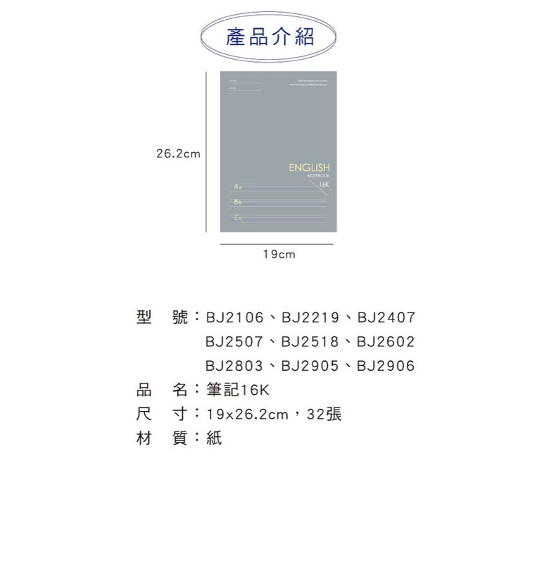 ◆規格: 19x26.2cm 16K 70g 32張
