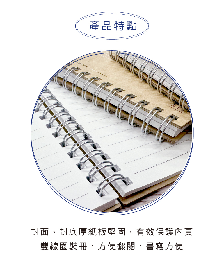 ◆雙線圈裝冊,翻閱、書寫方便。