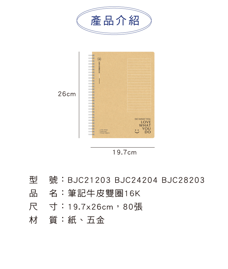 ◆筆記牛皮雙圈16K 【BJC21203 BJC24204 BJC28203】