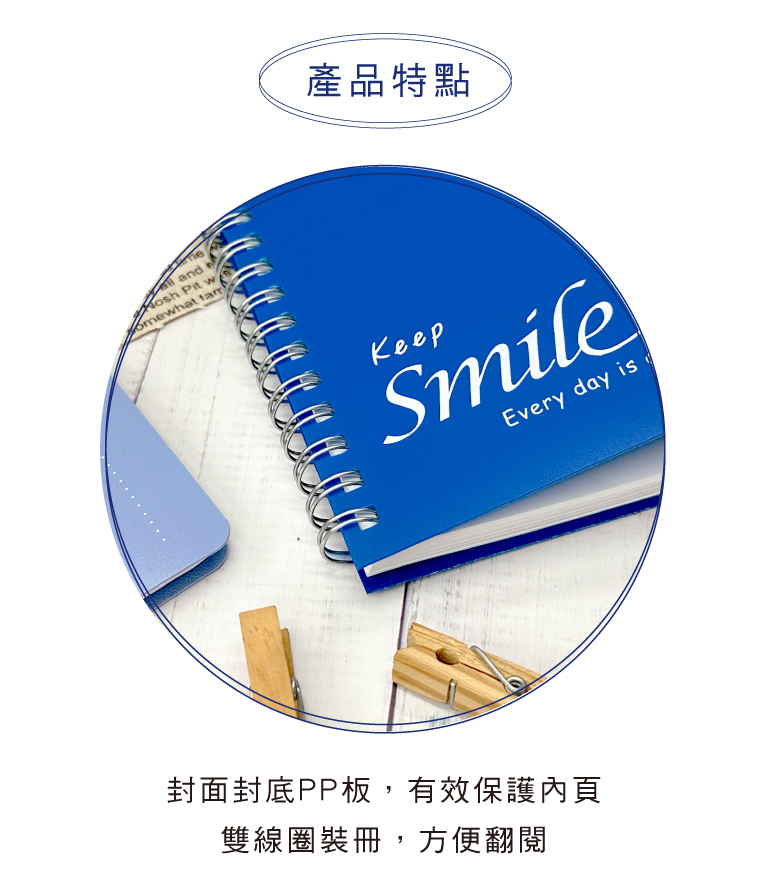 ◆雙線圈裝冊,翻閱、書寫方便。