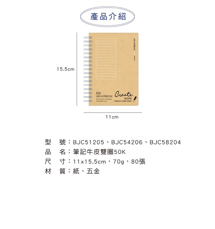 ◆四季紙品 筆記 牛皮雙圈 50K 【BJC51205 BJC54206 BJC58204】