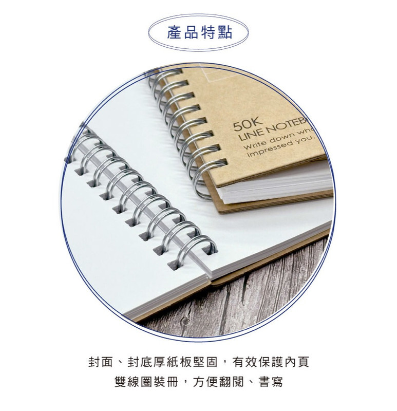 ◆雙線圈裝冊,翻閱、書寫方便。