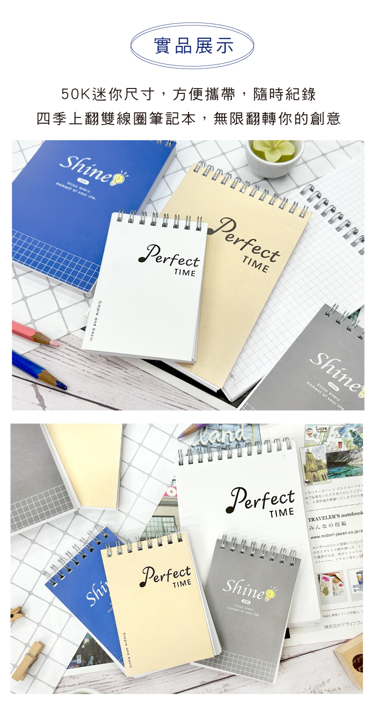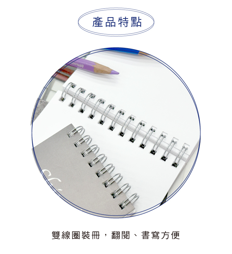 ◆雙線圈裝冊,翻閱、書寫方便。