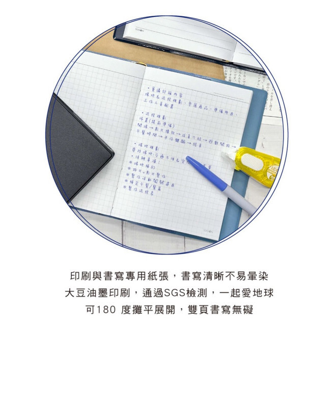 ◆180度可攤平設計,方便書寫。