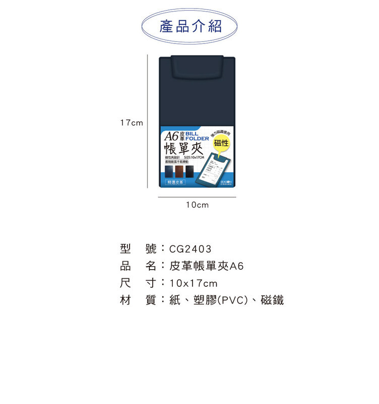 ◆四季紙品 皮革帳單夾A6 【CG2403】