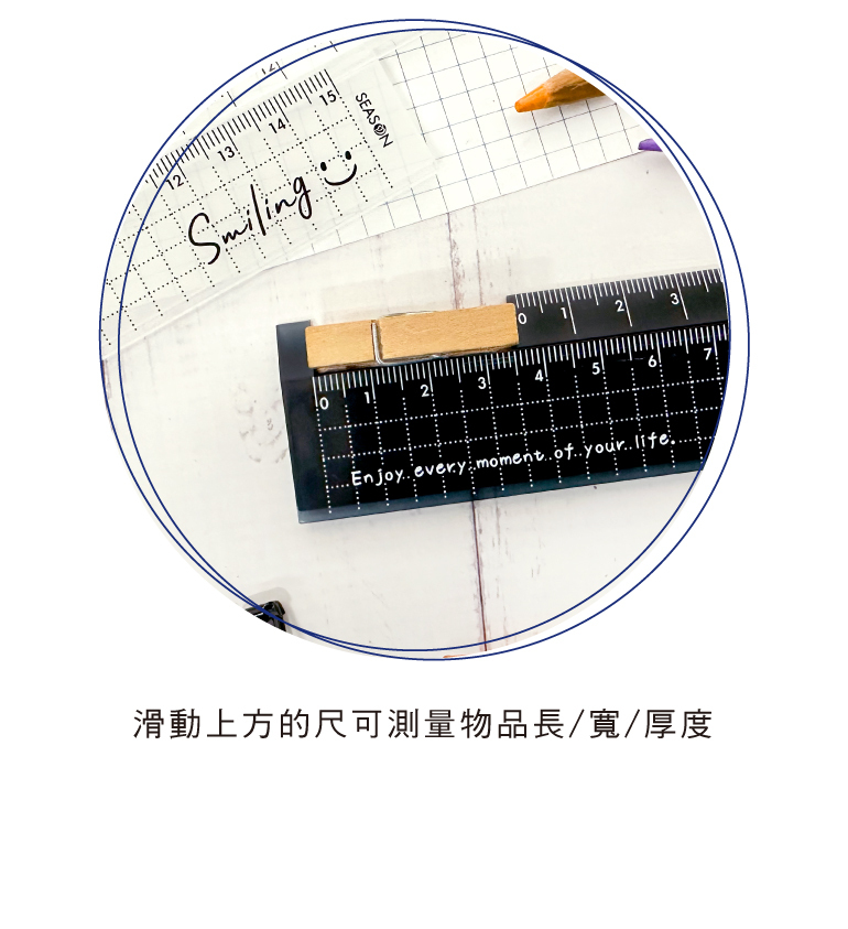 ◆滑動上方的尺可測量物品長/寬/厚度。