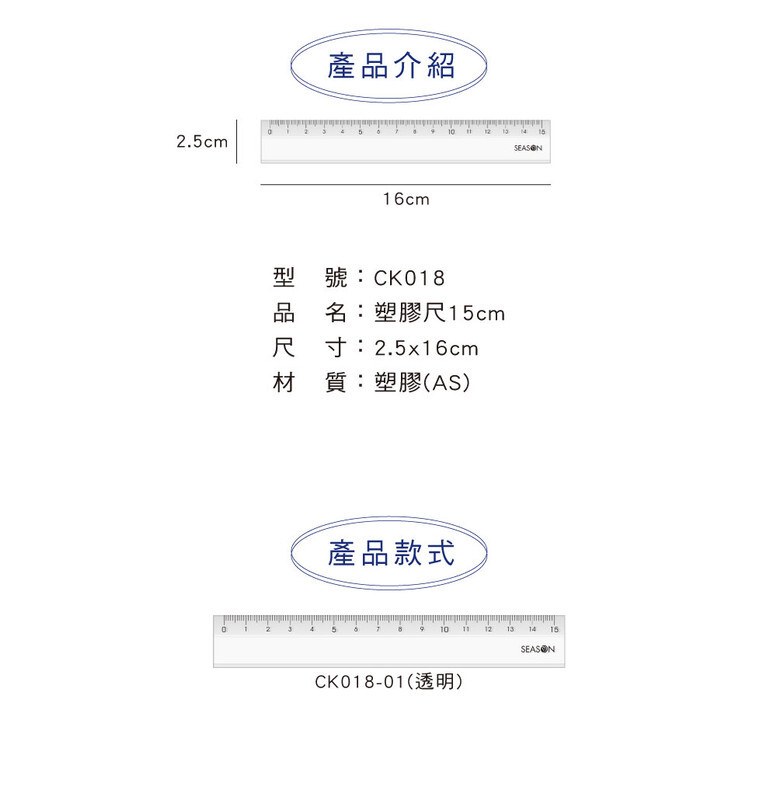 ◆四季紙品 塑膠尺15cm 透明 【CK018-01】