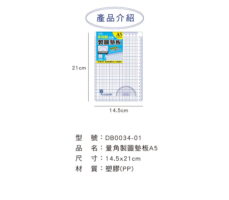 ◆四季紙品 量角製圖墊板A5 深藍 【DB0034-01】