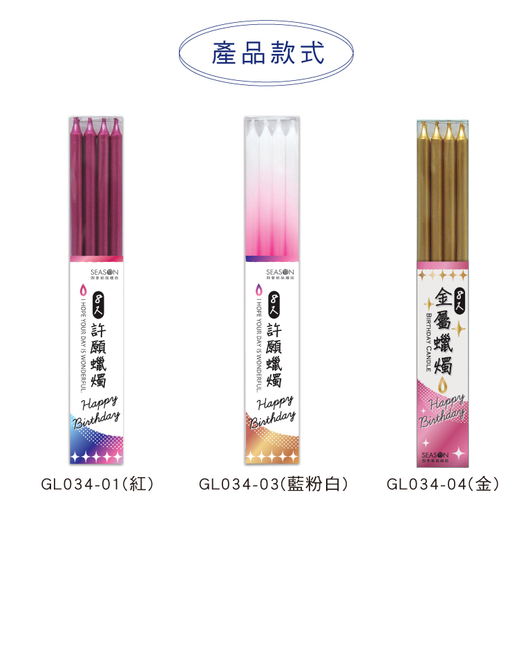 ◆另有其他款式生日蠟燭供選擇。