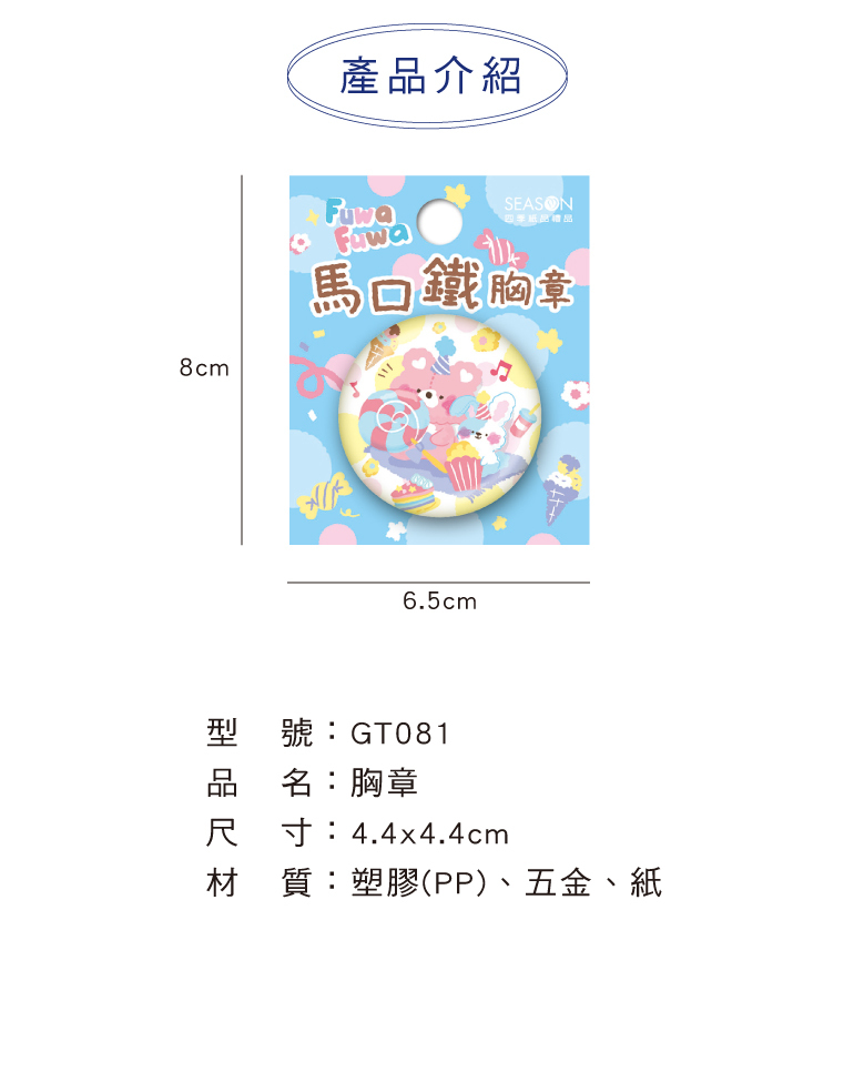 ◆四季紙品 超值胸章 圓44mm 混2 【GP081A-X2】