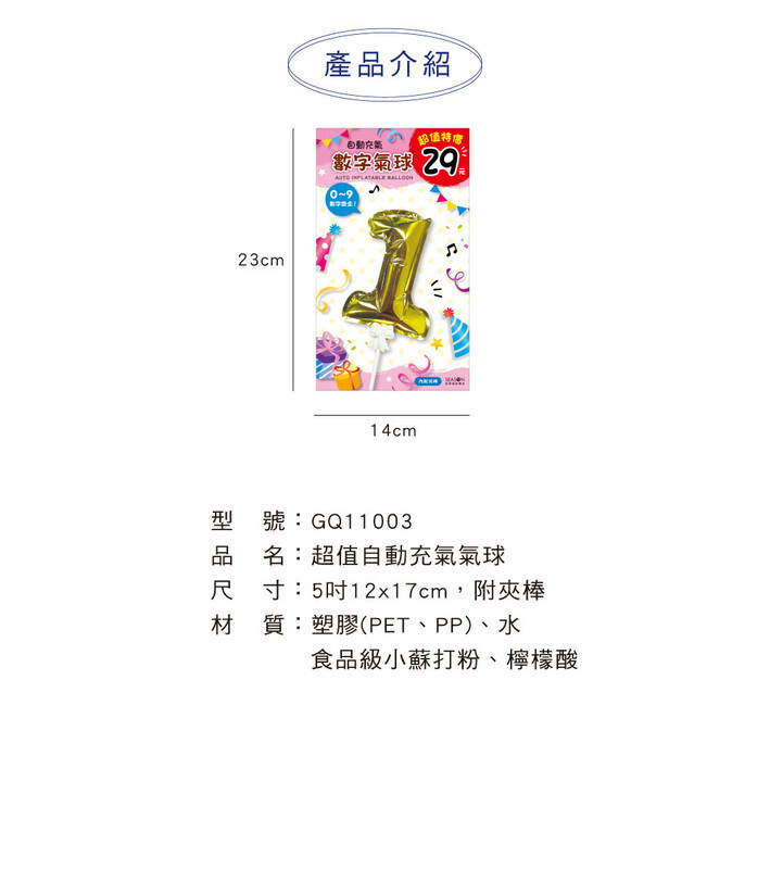 ◆四季紙品 超值自動充氣氣球 【GQ11003】