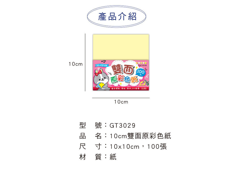◆四季紙品 10cm雙面原彩色紙 【GT3029】