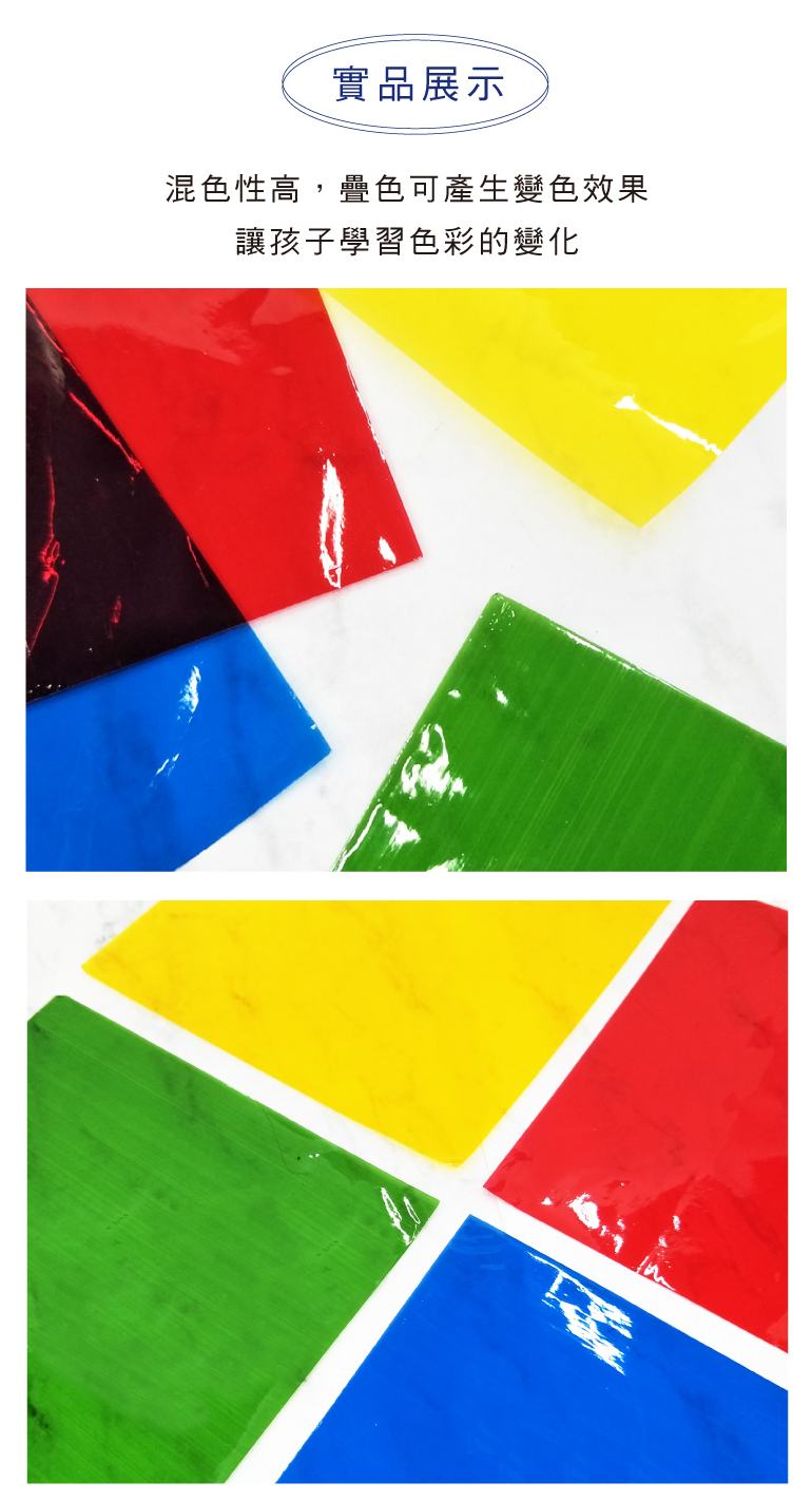 ◆疊色可產生變色效果,讓孩子學習色彩。