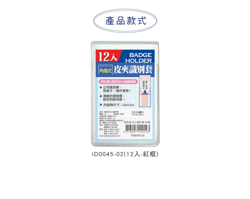 ◆四季紙品 皮夾直12入證件套 紅框 【ID0045-02】
