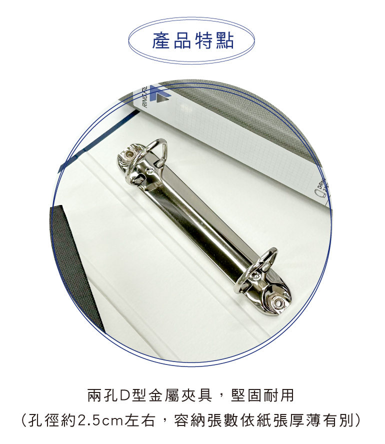 ◆兩孔D型金屬夾具,堅固耐用。
