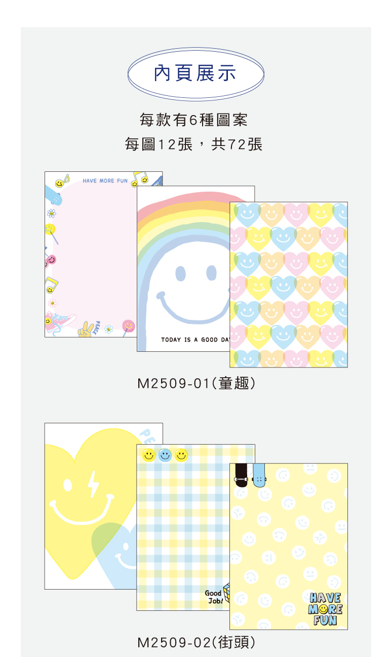 ◆每款有6種圖案,每圖12張,共72張。