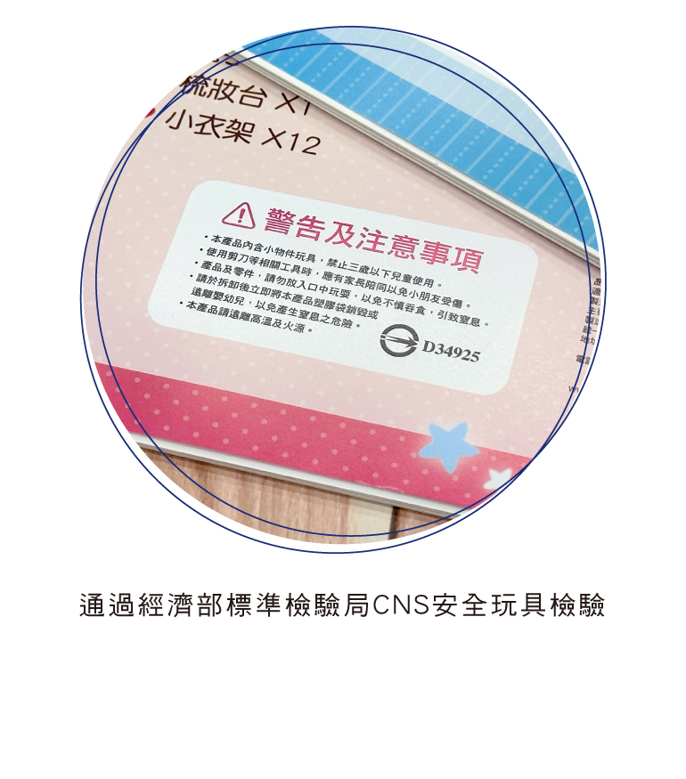 ◆通過經濟部標準檢驗局CNS安全玩具檢驗。