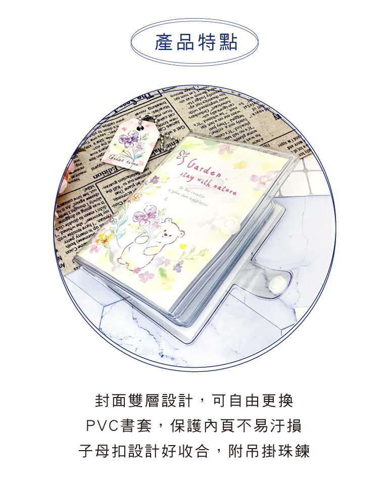 ◆PVC雙層書套,可自由更換封面,不易汙損。