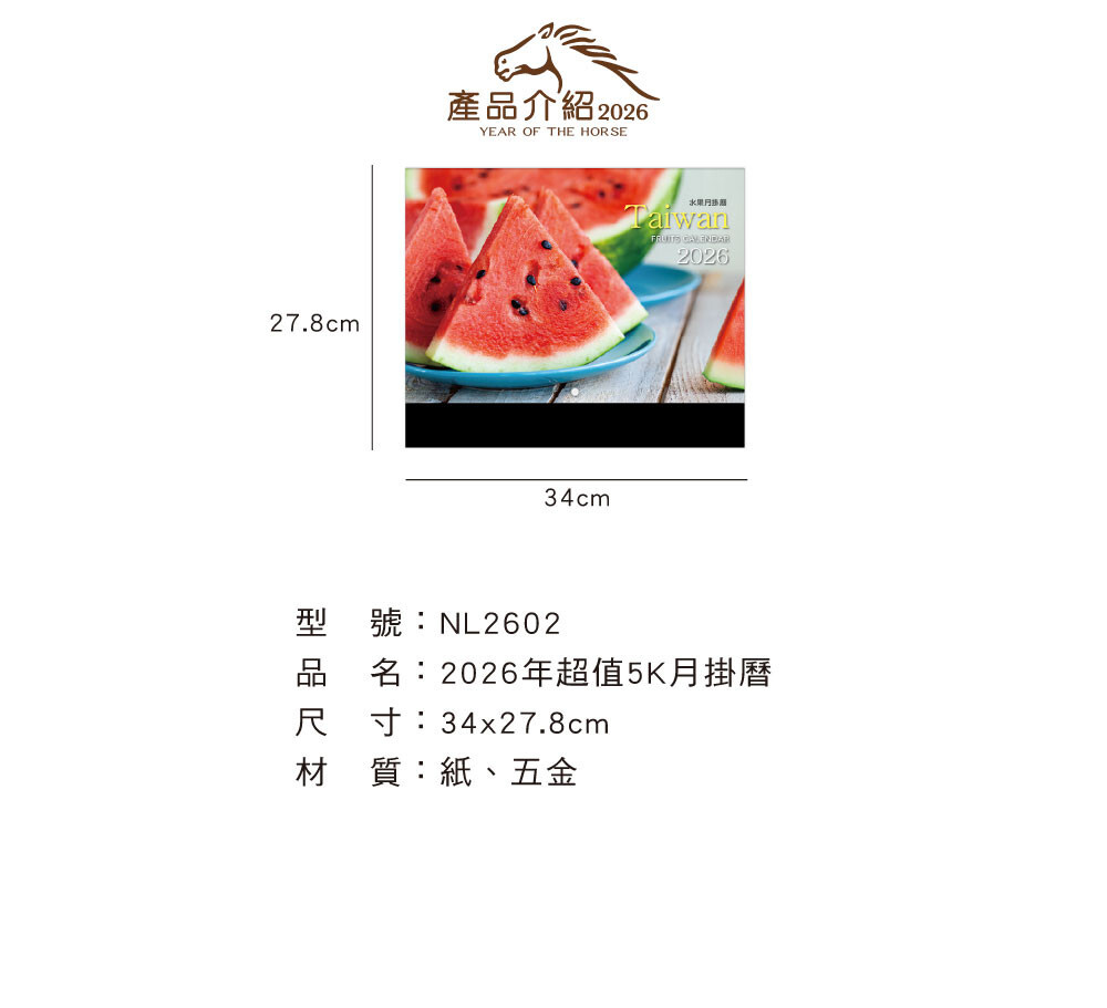 ◆四季紙品 2026年超值5K月掛曆 【NL2602】