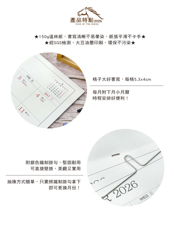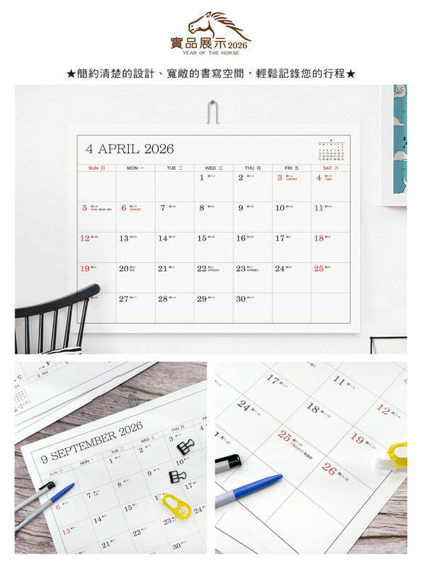 ◆四季紙品 2026年超值7K雙面月掛曆 【NL2603】