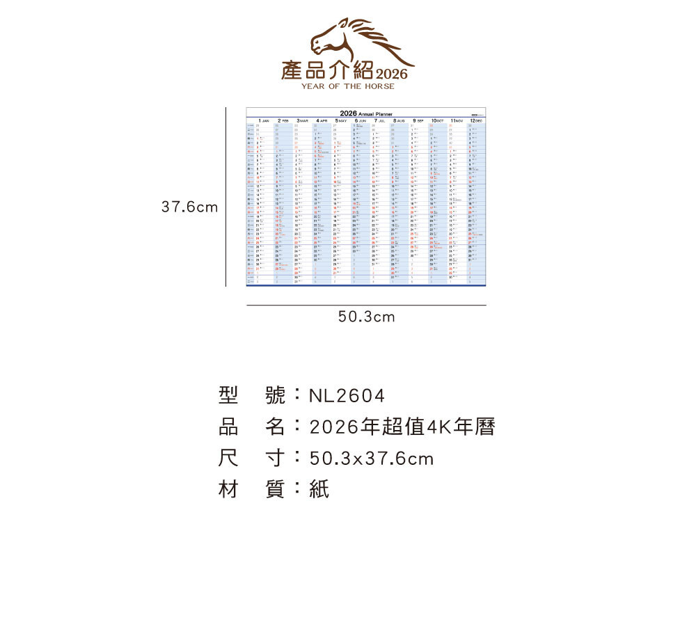 ◆四季紙品 2026年超值4K年曆 【NL2604】