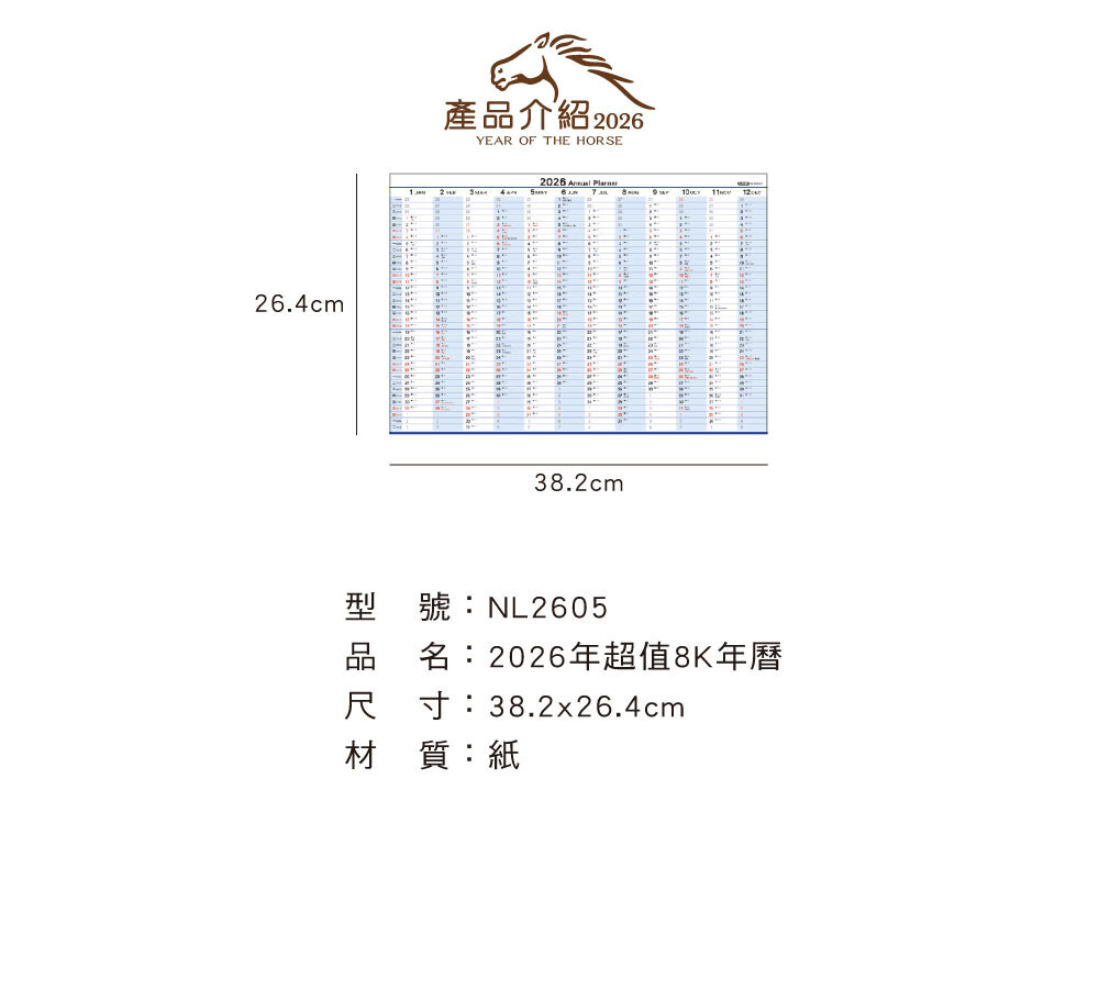 ◆四季紙品 2026年超值8K年曆 【NL2605】