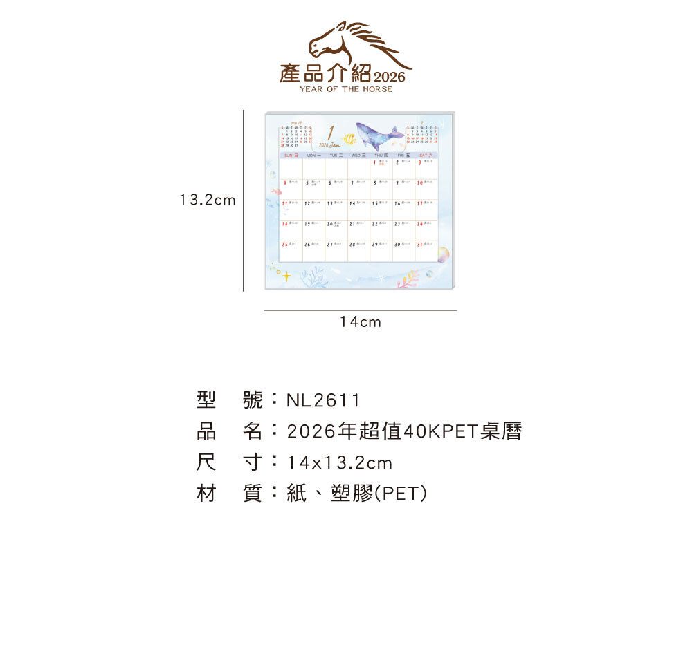 ◆四季紙品 2026年超值40K PET桌曆 【NL2611】