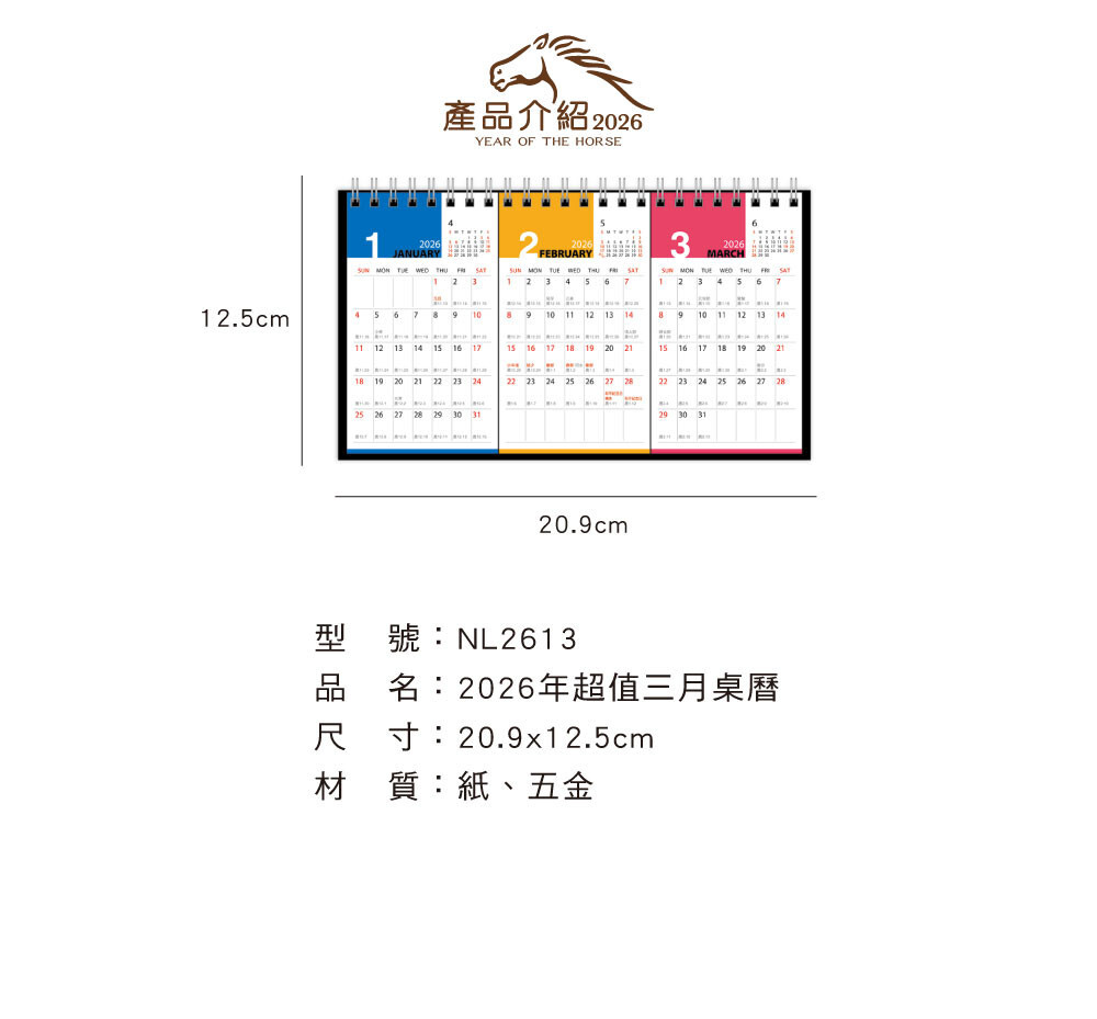 ◆四季紙品 2026年超值三月桌曆 【NL2613】