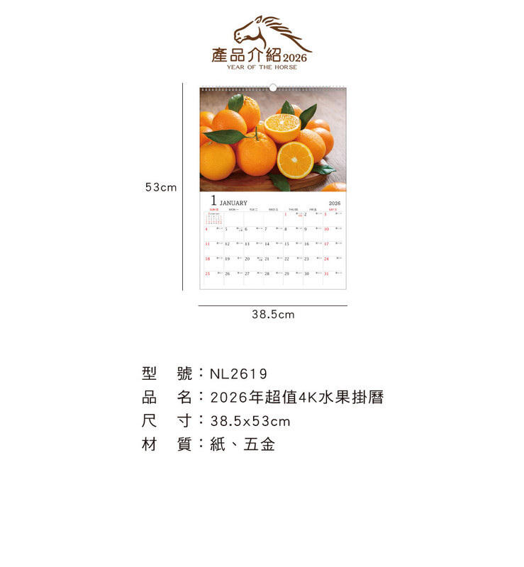 ◆四季紙品 2026年超值4K水果掛曆 【NL2619】