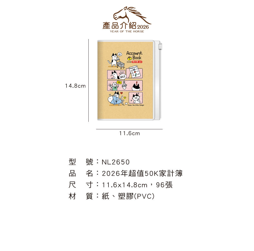 ◆四季紙品 2026年超值50K家計簿 【NL2650】