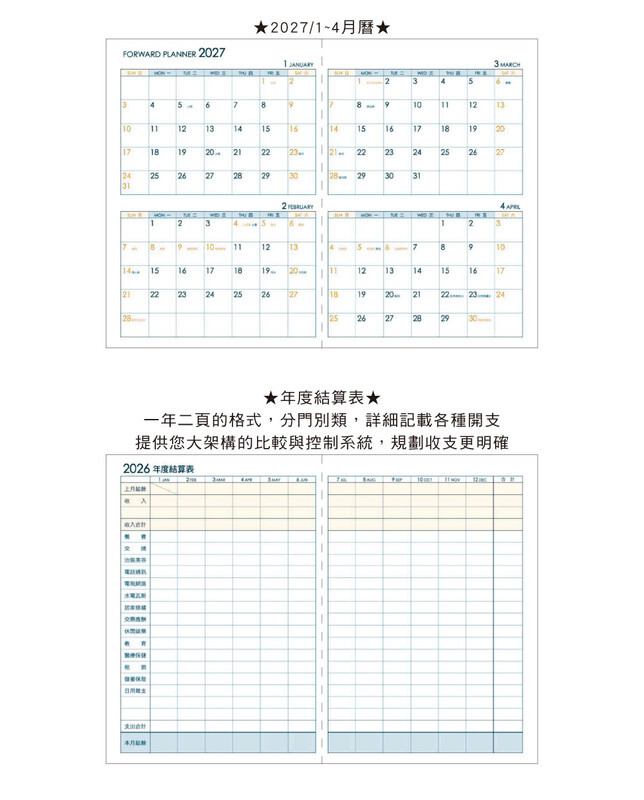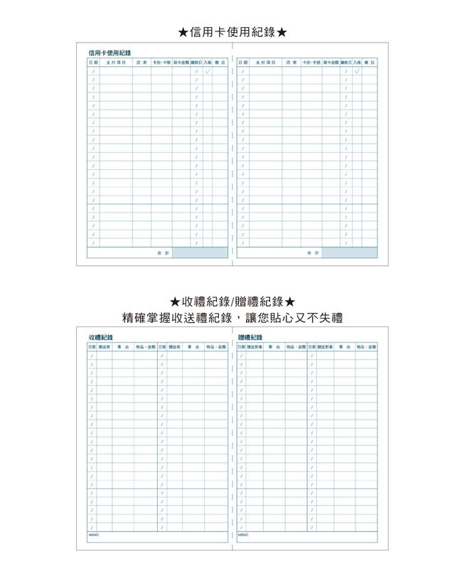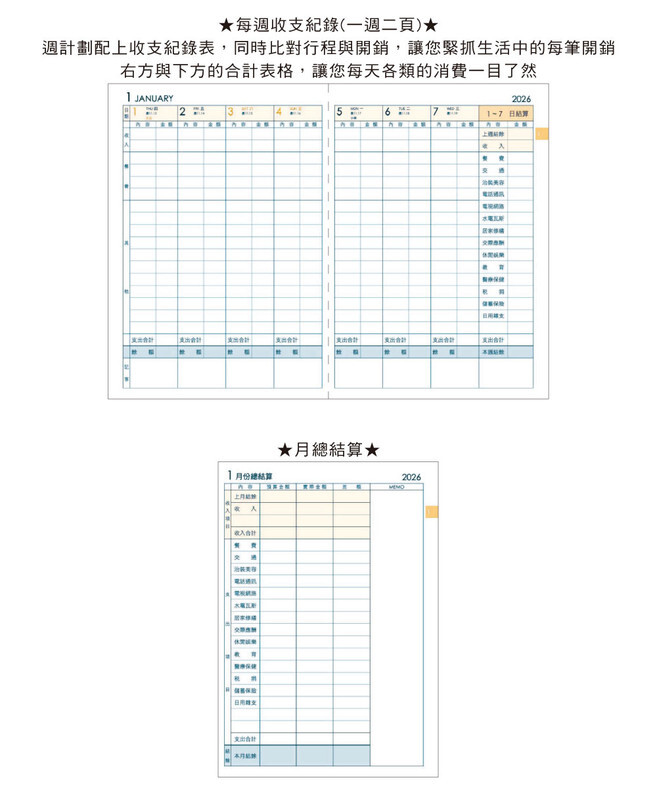 ◆內頁功能規劃完整,讓您輕鬆記錄每筆開支。