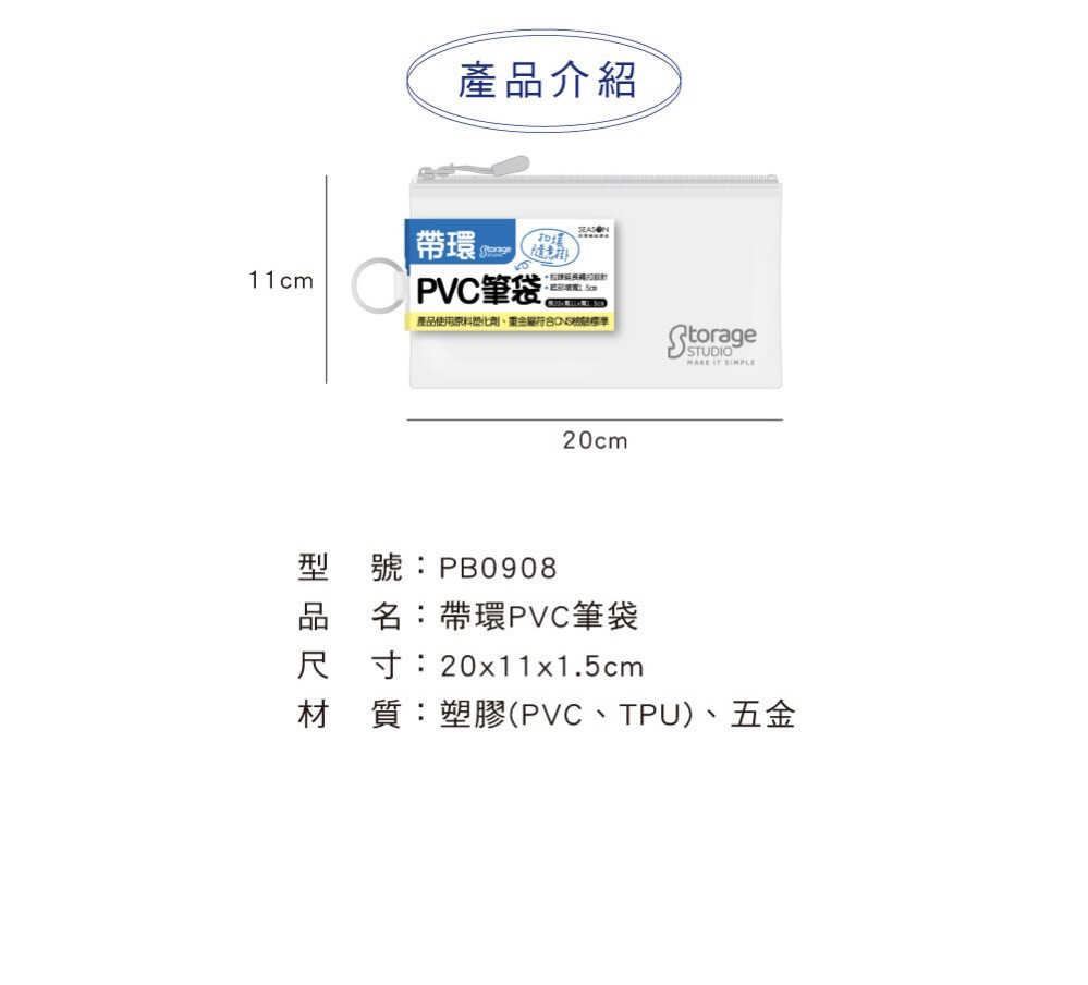 ◆四季紙品 帶環PVC筆袋 【PB0908】