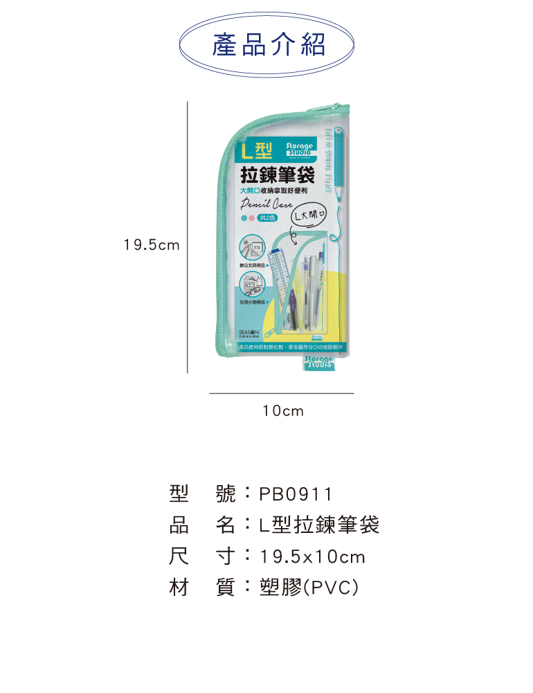 四季紙品 L型拉鍊筆袋 【PB0911】
