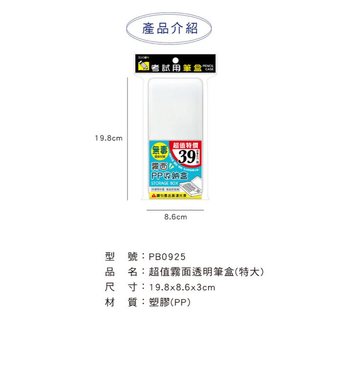 ◆四季紙品 超值霧面透明筆盒(特大) 【PB0925】