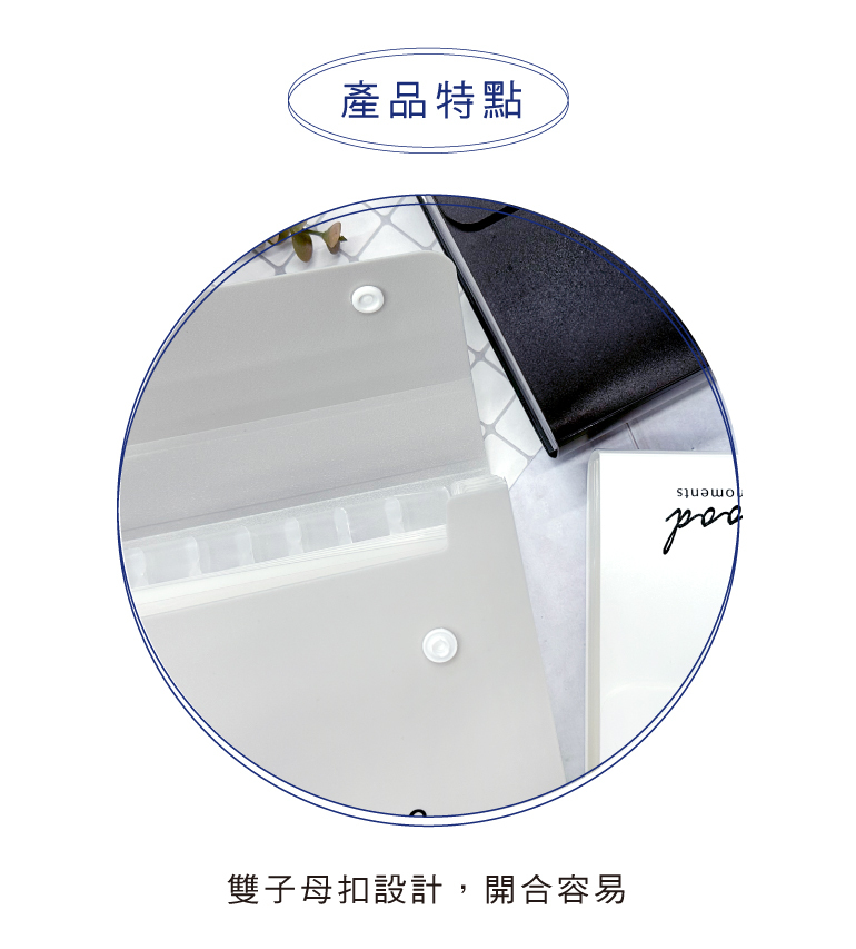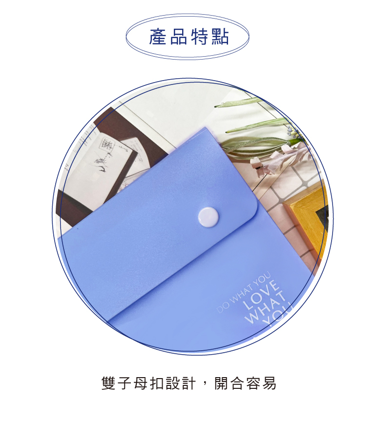 ◆PP材質製造,雙子母扣,開合容易。