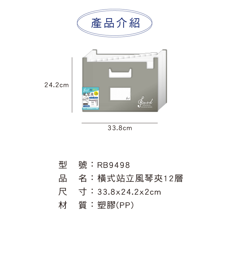 四季紙品 橫式站立風琴夾12層 【RB9498】