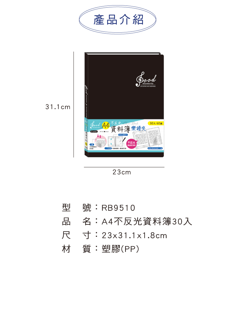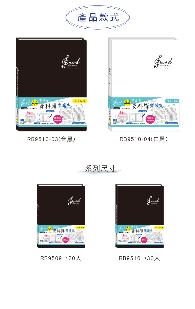 四季紙品 A4不反光資料簿30入 【RB9510】
