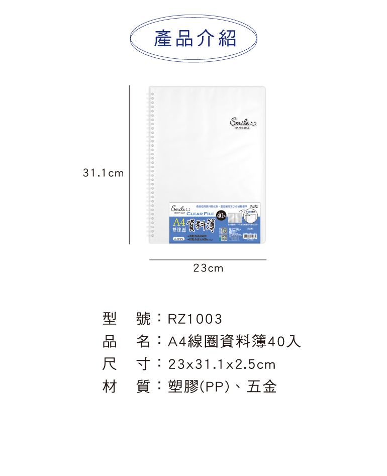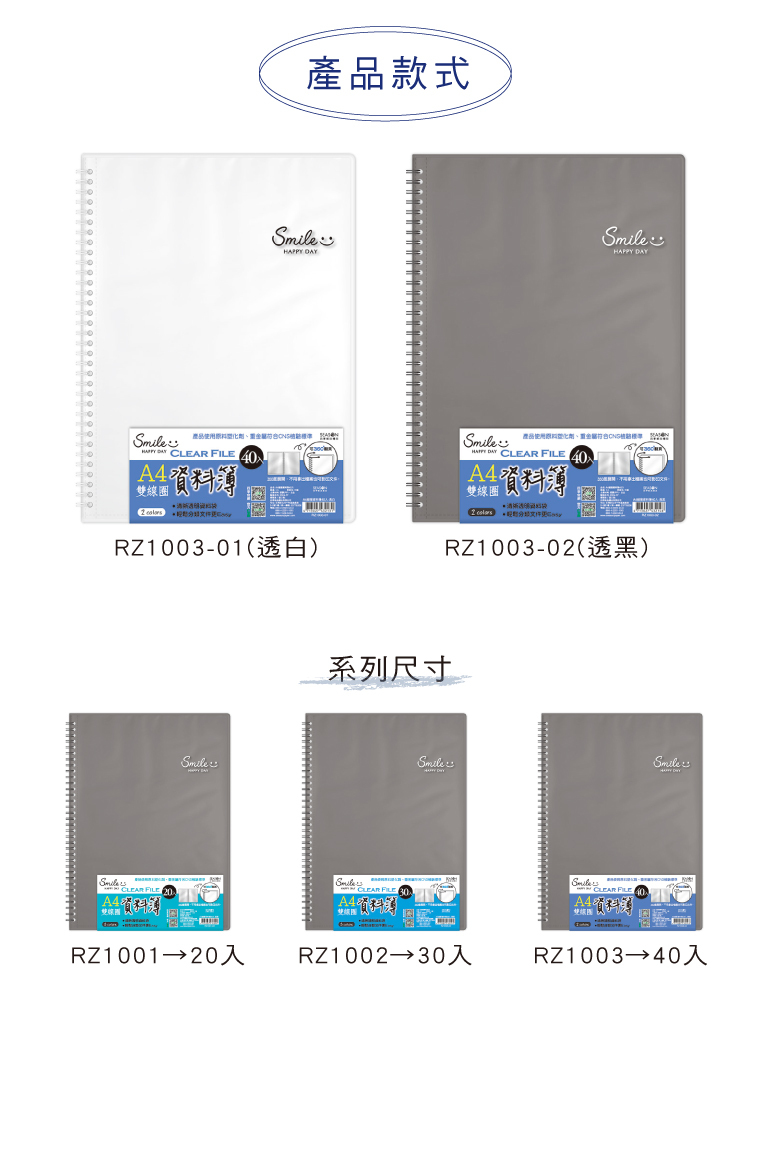◆A4線圈資料簿40入 【RZ1003】