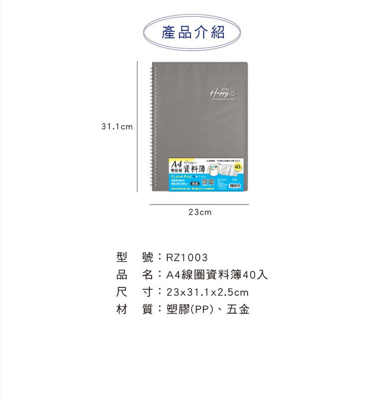 ◆四季紙品 A4線圈資料簿40入 【RZ1003】