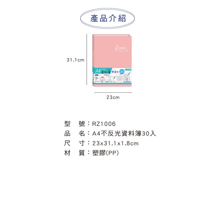 ◆四季紙品 A4不反光資料簿30入 【RZ1006】
